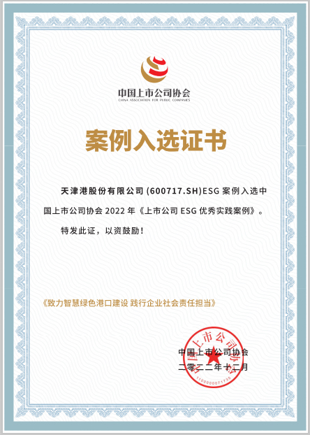 2022年12月,公司入選中國上市公司協(xié)會2022年《上市公司ESG優(yōu)秀實踐案例》